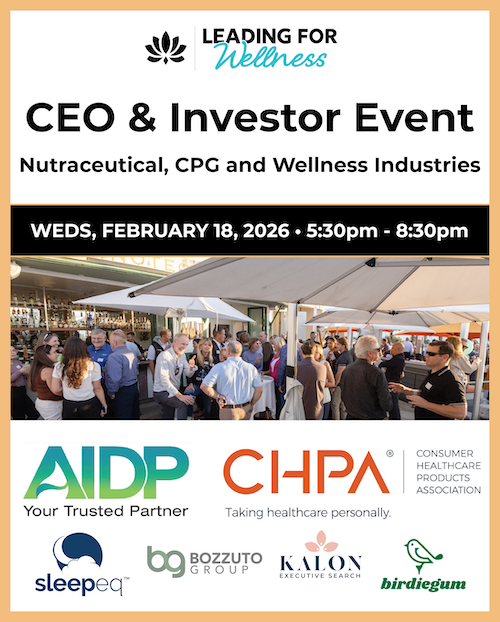 Leading for Wellness unites elite CEOs and investors across the wellness ecosystem to collaborate, build powerful relationships, and champion breakthrough strategies in wellness, biohacking, nutraceuticals, and better-for-you CPG innovation.